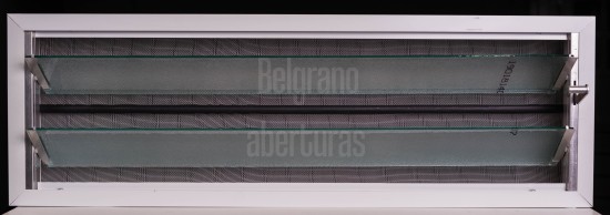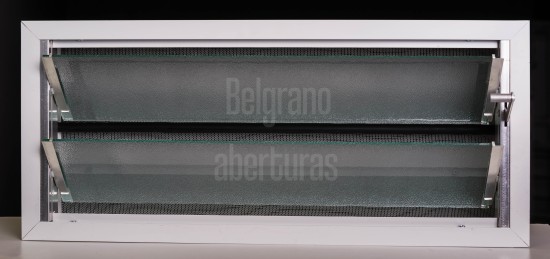 Aireador aluminio con reja de hierro macizo y mosquitero.