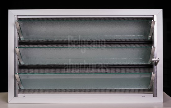 Aireador aluminio con reja de hierro macizo y mosquitero.